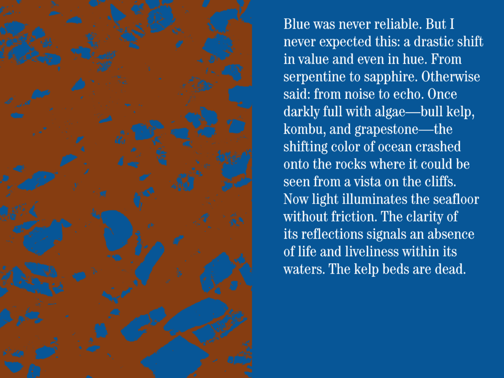 A voice becomes a mirror plane becomes a holohedral wand is a speculative fiction about the extraction of minerals in the deep sea. Narrated by a not-quite-human character, it tells the story of a deadening ocean, and the adventures of this shapeshifting being amidst the increased desperation to maintain the structures of life under capitalism. Full of grief and love for an ocean once known intimately and whose very colors have changed due to global warming, the character transforms beyond gender and human form to evolve as a symbiont with other life forms such as microorganisms with an appetite for stones. Could this inhuman appetite invite small forms of sabotage against extractivism?